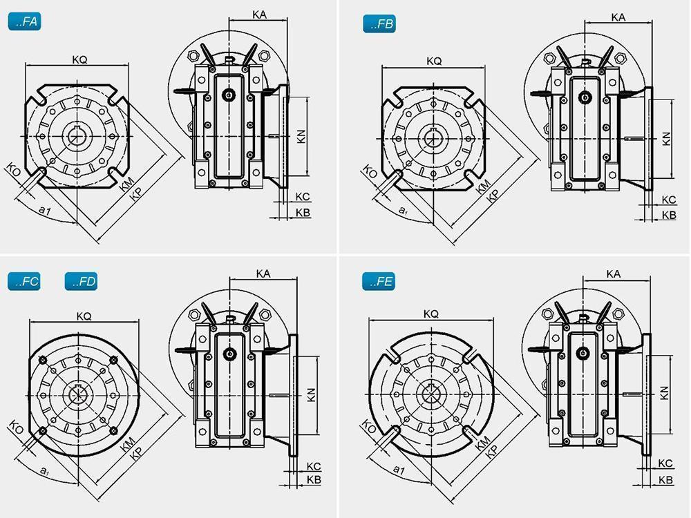 The following is the connection dimension of the BKM series electric motor and speed reducer.