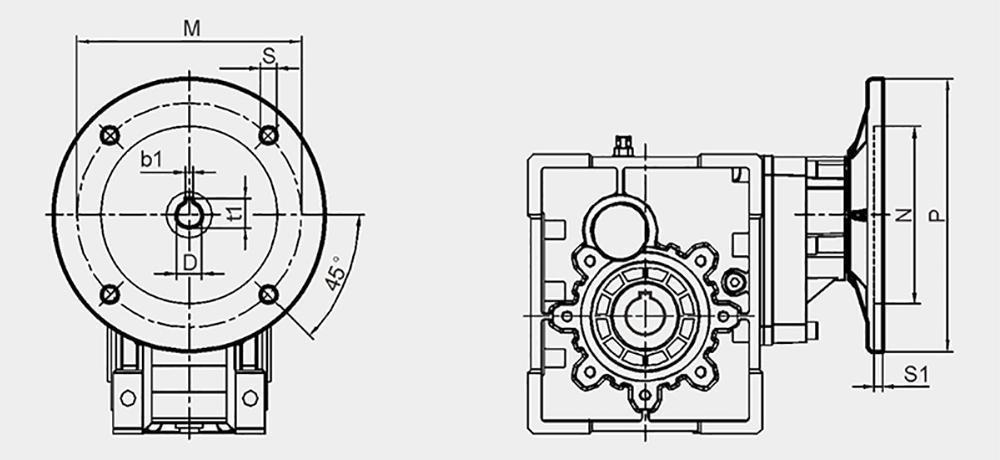 | BKM | NEMA Flange | B | D | E | b1 | t1 | M | N | P | Q | S | S1 |